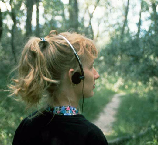 In these famous audio walks or installations Cardiff gives instructions for participants to follow, encouraging them to navigate a specific place through her perspective. Her audio walks mix imagination with reality. Her soothing and almost eerie voice creates a sense of adventure. The participant experiences the site through her eyes by listening in headphones or additionally watching on a camera or phone, listening to background noises along with her musings.